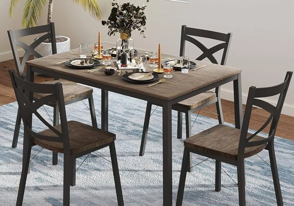 The darker wood surface also hides daily wear better. That makes it a practical option for busy dining areas.